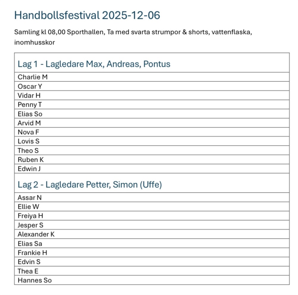 I helgen kommer kallelsen till nästa helgs handbollskaravan/sammandrag i Sporthallen.